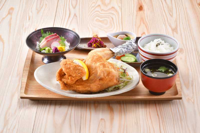 |  | 半身揚御膳(茶碗蒸し・一品・刺身・みそ汁・ご飯・漬物)半身揚げを豪快に!ぶつ切りにもできます。 | 2,000円(税込2,200円) |