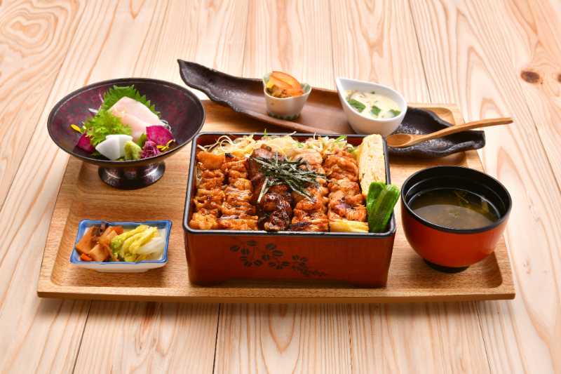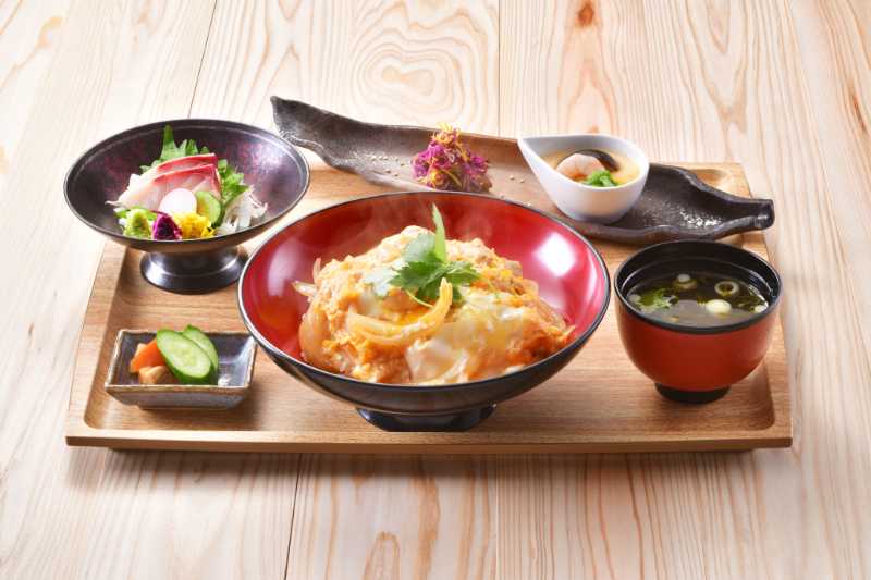 |  | 国産若鶏親子丼御膳(サラダ・一品・刺身・みそ汁・ご飯・漬物)鶏と鰹出汁に秘伝タレを合わせ、県産卵でふんわり仕上げました | 1,446円(税込1,590円) |