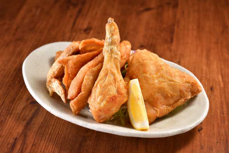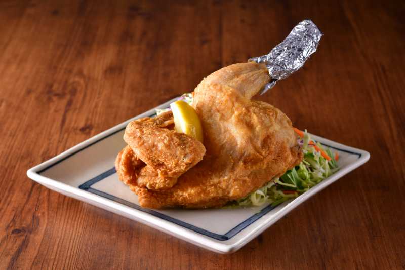 |   | 若鶏唐揚新鮮な国産若鶏を豪快に半身揚げ! 半身又はぶつ切 カレー味、ガーリック味、塩こしょう味、ふつう味 |