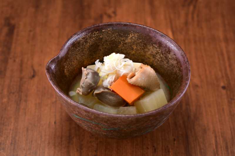 |  | 鶏と野菜の味噌煮込み創業以来続く人気メニュー! 砂肝・皮と根菜を地元「佐藤糀屋」さんの味噌で味付け。 |